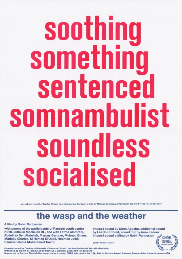 Exploring an archive of poetry written by youngsters at the former youth centre Rzoezie (Tamazight for “wasp”, ‘78-‘06) in Mechelen (Belgium), the original authors and contemporary poets revisit, recite and discuss their selection of poems, probing their resonance in today’s social and political “weather”.